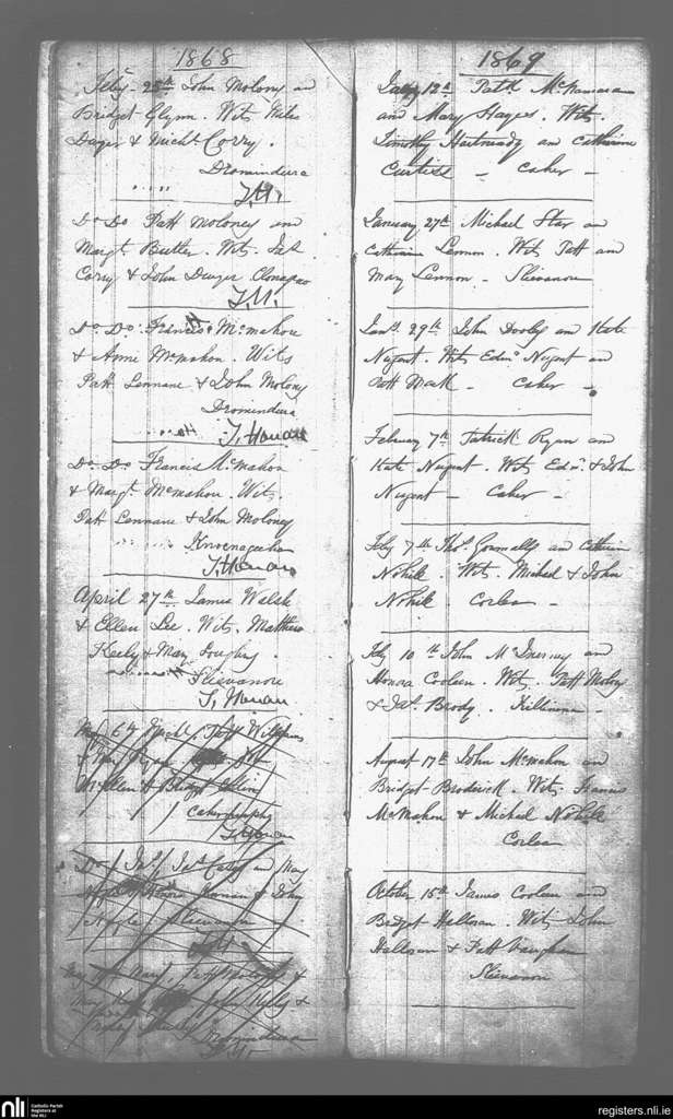 Caher Feakle; County of Clare; Diocese of Killaloe. Marriages, Feb. 1868 to Oct. 1869