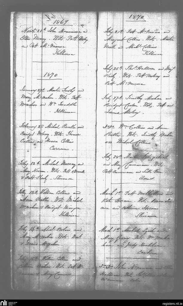 Caher Feakle; County of Clare; Diocese of Killaloe. Marriages, Nov. 1869 to Mar. 1870