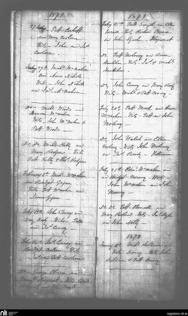 Caher Feakle; County of Clare; Diocese of Killaloe. Marriages, Jan. 1871 to Jan. 1872