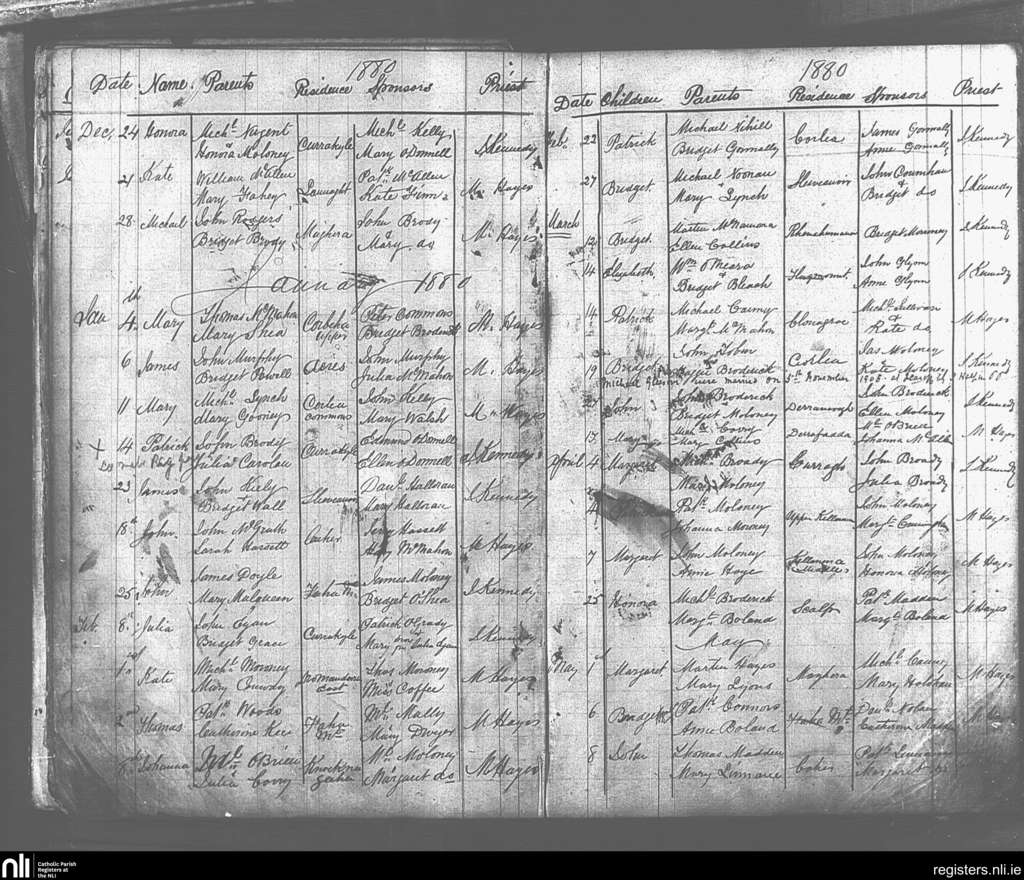 Caher Feakle; County of Clare; Diocese of Killaloe. Baptisms, Dec. 1879 to May 1880