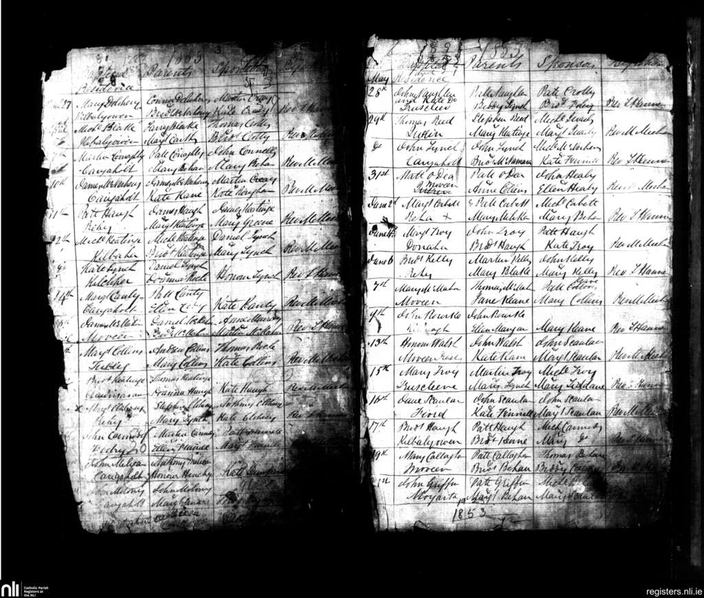 Carrigaholt; County of Clare; Diocese of Killaloe. Baptisms, Apr. 1853 to June 1853