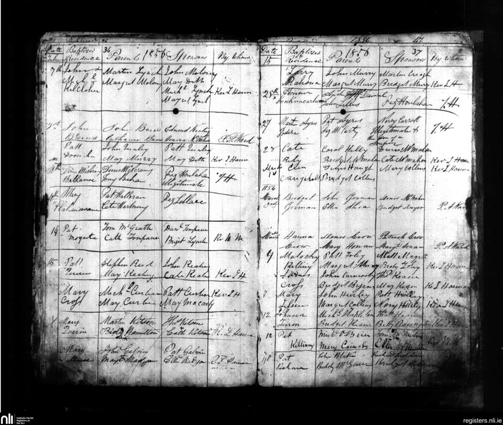 Carrigaholt; County of Clare; Diocese of Killaloe. Baptisms, Feb. 1856 to Mar. 1856