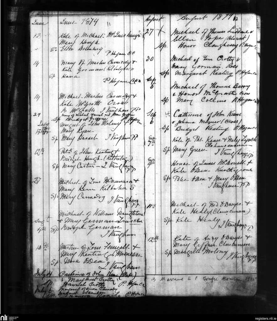 Carrigaholt; County of Clare; Diocese of Killaloe. Baptisms, June 1879 to Sep. 1879