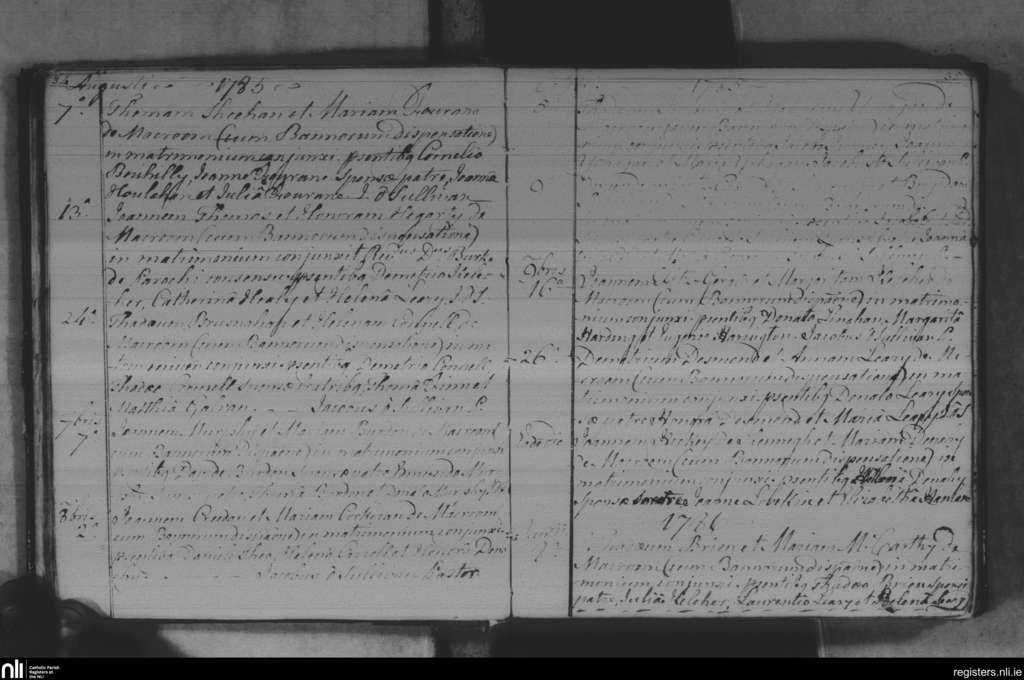 Macroom; County of Cork; Diocese of Cloyne. Marriages, Aug. 1785 to Jan. 1786