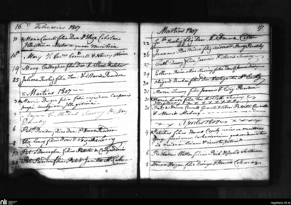 Macroom; County of Cork; Diocese of Cloyne. Baptisms, Feb. 1807 to Apr. 1807