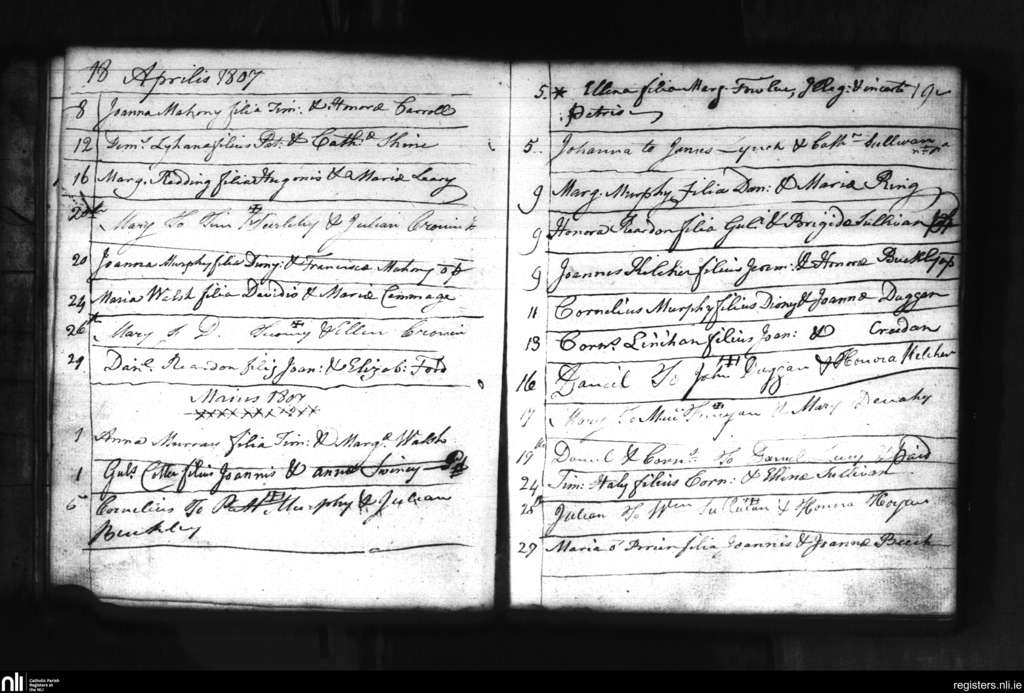 Macroom; County of Cork; Diocese of Cloyne. Baptisms, Apr. 1807 to May 1807