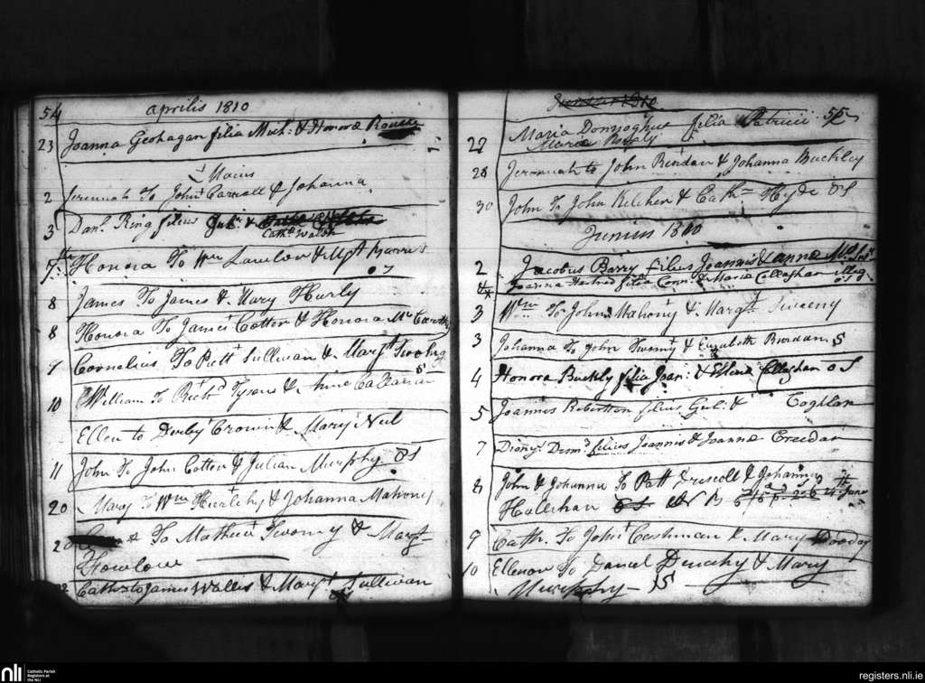 Macroom; County of Cork; Diocese of Cloyne. Baptisms, Apr. 1810 to June 1810