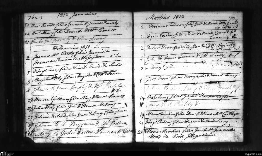 Macroom; County of Cork; Diocese of Cloyne. Baptisms, Jan. 1812 to Mar. 1812