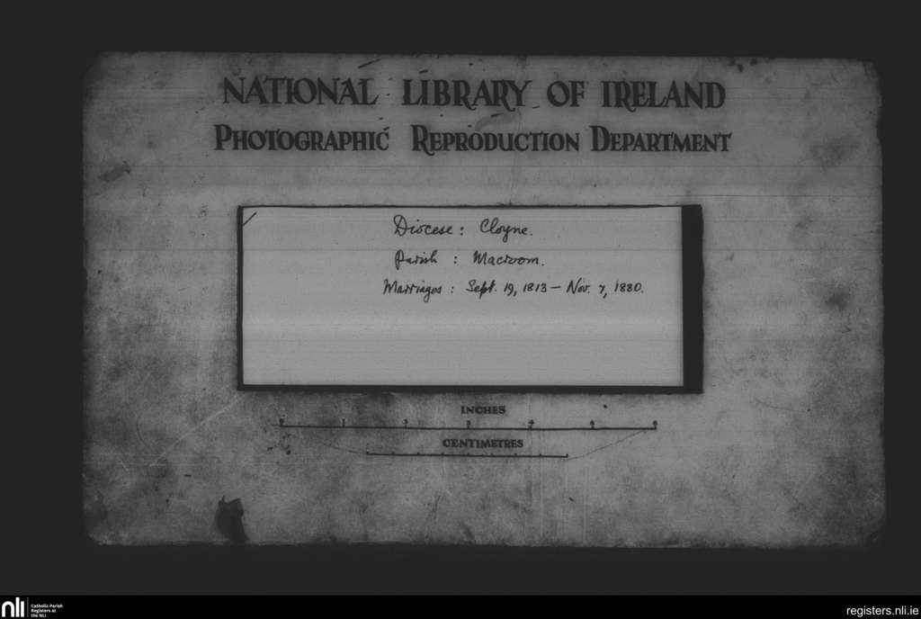 Macroom; County of Cork; Diocese of Cloyne. Marriages