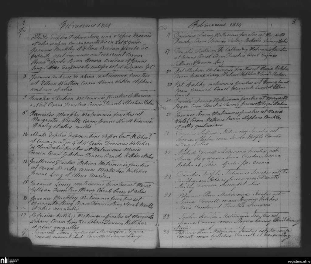 Macroom; County of Cork; Diocese of Cloyne. Marriages, Feb. 1814
