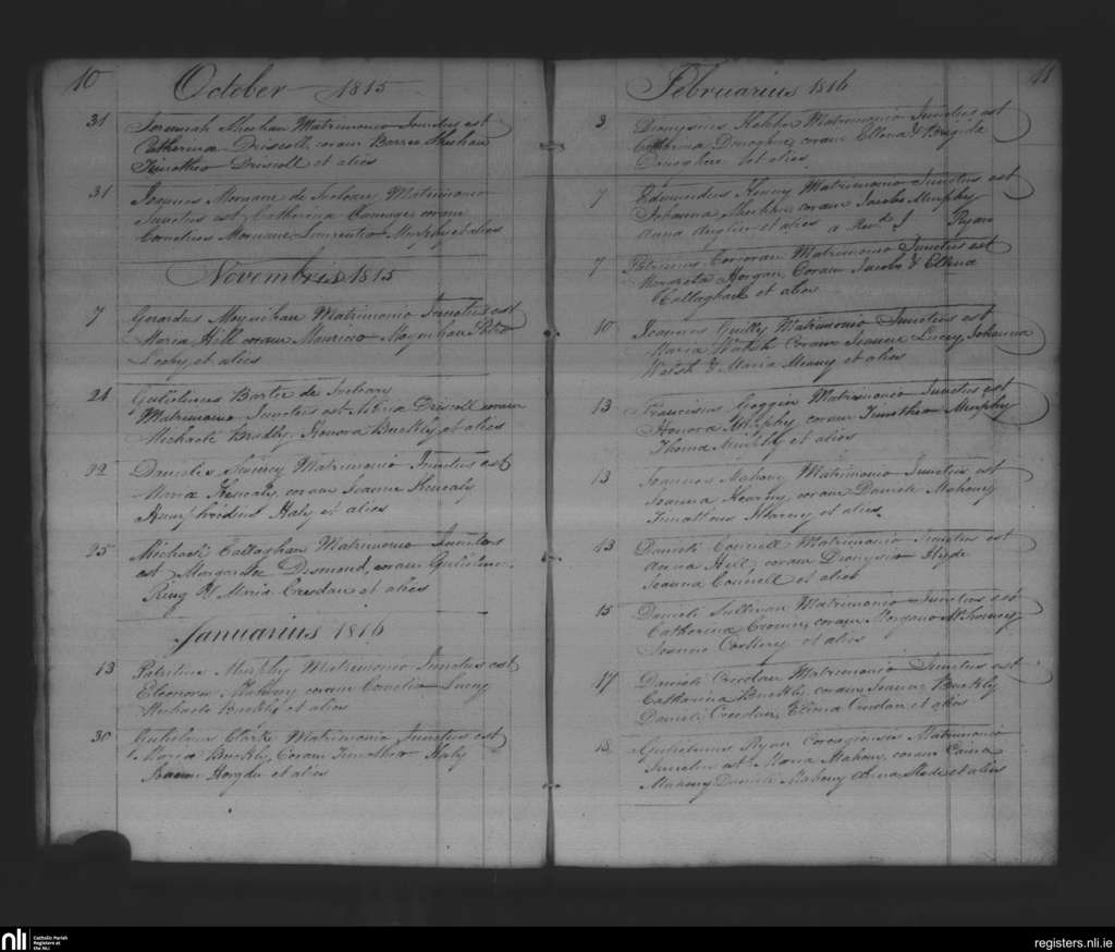 Macroom; County of Cork; Diocese of Cloyne. Marriages, Oct. 1815 to Feb. 1816
