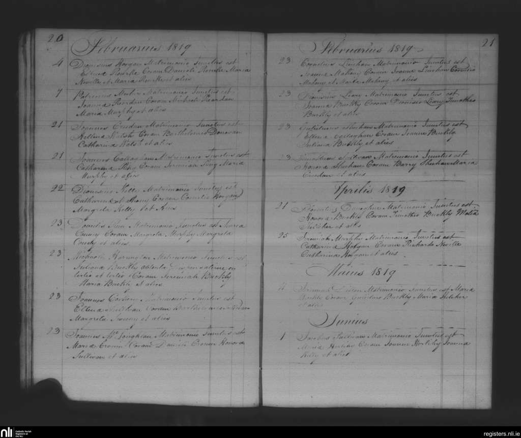 Macroom; County of Cork; Diocese of Cloyne. Marriages, Feb. 1819 to June 1819