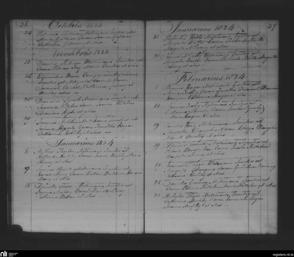 Macroom; County of Cork; Diocese of Cloyne. Marriages, Oct. 1823 to Feb. 1824