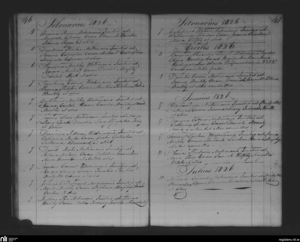 Macroom; County of Cork; Diocese of Cloyne. Marriages, Feb. 1826 to July 1826