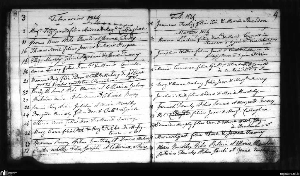 Macroom; County of Cork; Diocese of Cloyne. Baptisms, Feb. 1814 to Mar. 1814