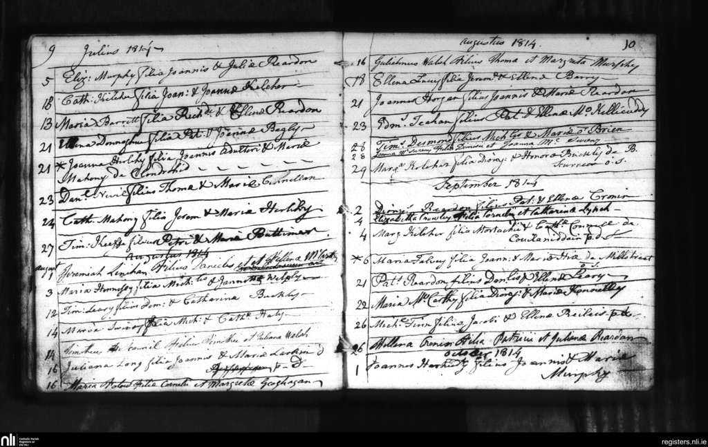 Macroom; County of Cork; Diocese of Cloyne. Baptisms, July 1814 to Oct. 1814