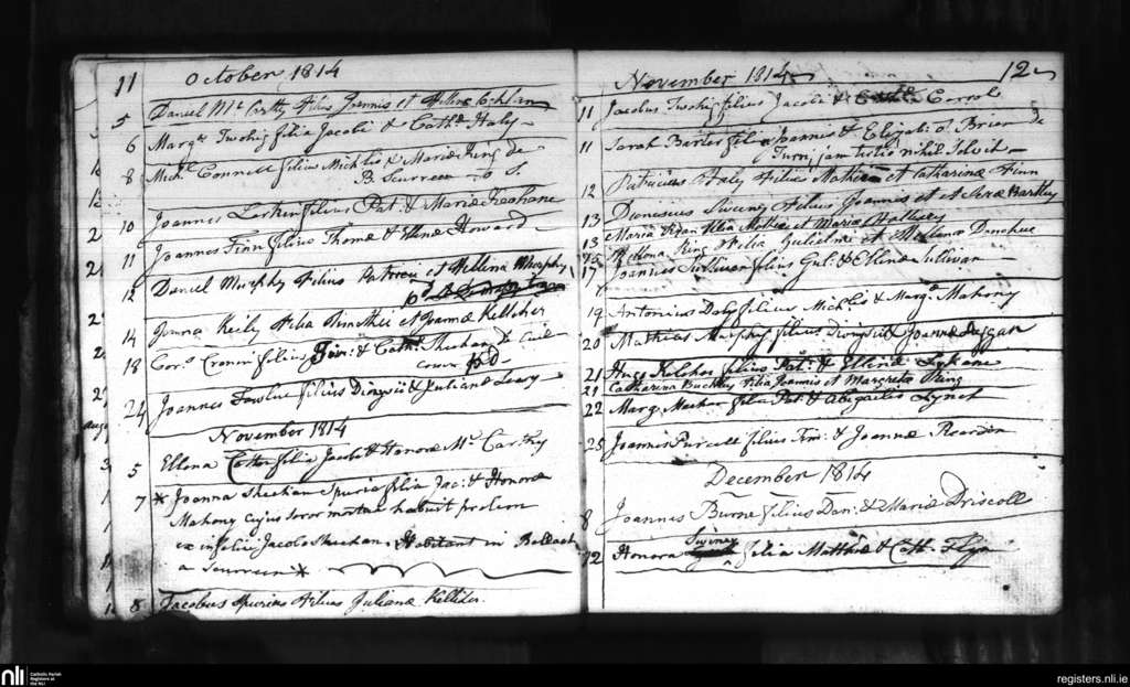 Macroom; County of Cork; Diocese of Cloyne. Baptisms, Oct. 1814 to Dec. 1814