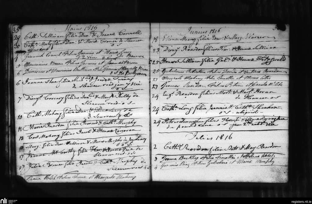Macroom; County of Cork; Diocese of Cloyne. Baptisms, May 1816 to July 1816