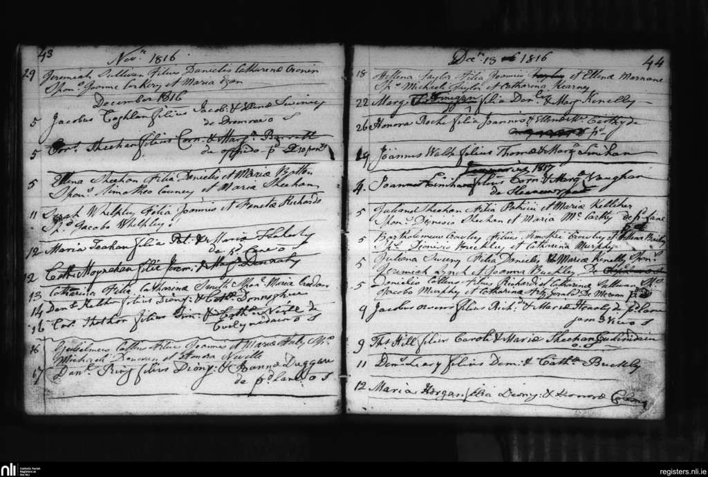 Macroom; County of Cork; Diocese of Cloyne. Baptisms, Nov. 1816 to Jan. 1817