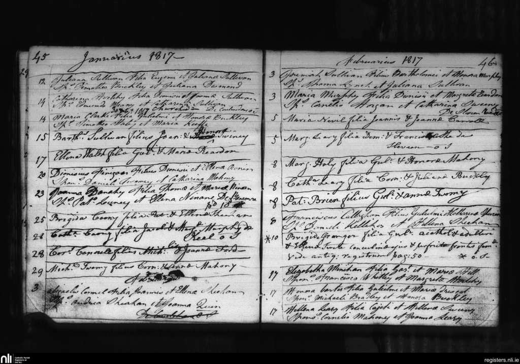 Macroom; County of Cork; Diocese of Cloyne. Baptisms, Jan. 1817 to Feb. 1817