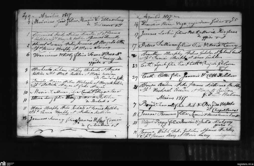 Macroom; County of Cork; Diocese of Cloyne. Baptisms, Apr. 1817 to May 1817