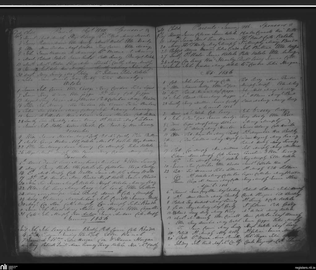Macroom; County of Cork; Diocese of Cloyne. Baptisms, Sep. 1855 to Apr. 1856