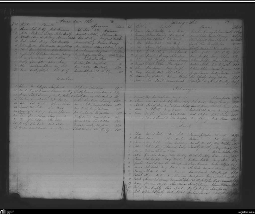 Macroom; County of Cork; Diocese of Cloyne. Baptisms, Nov. 1861 to Mar. 1862