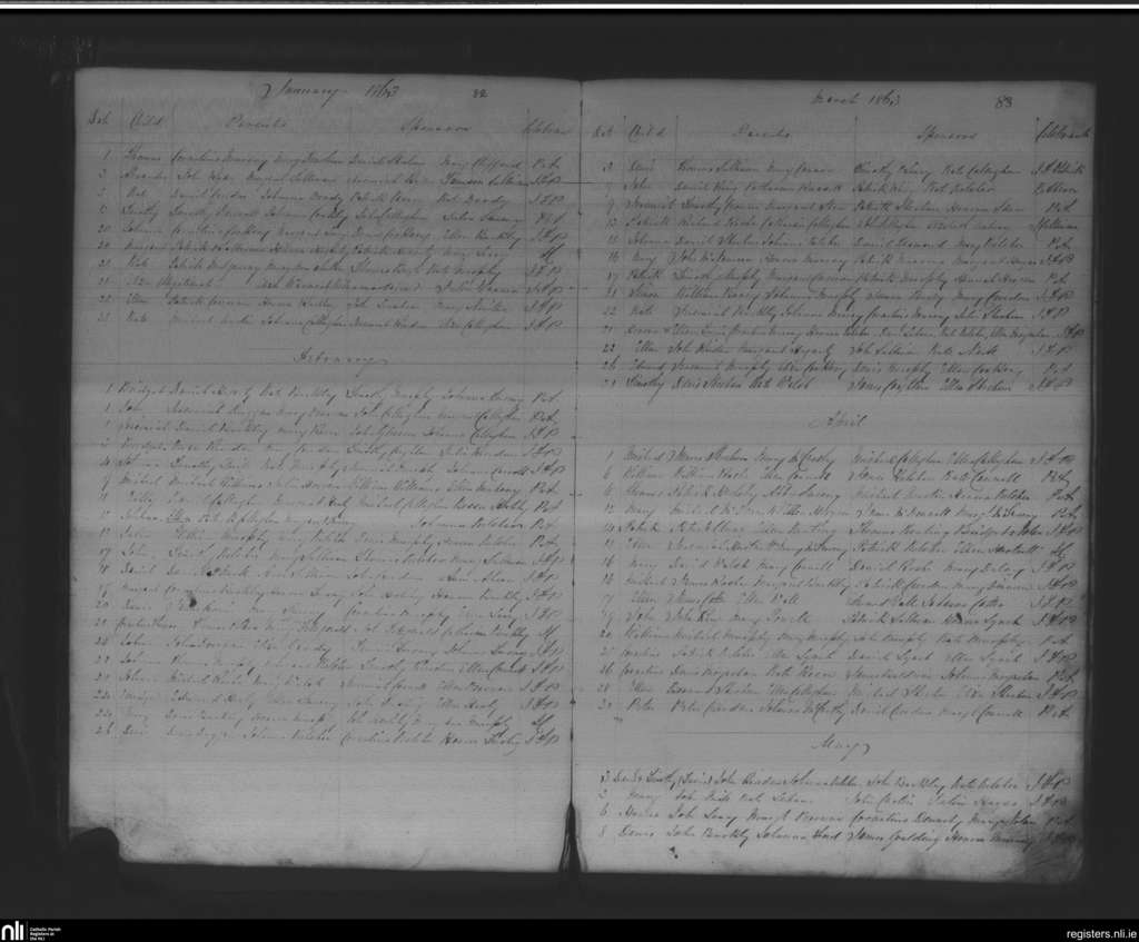 Macroom; County of Cork; Diocese of Cloyne. Baptisms, Jan. 1863 to May 1863