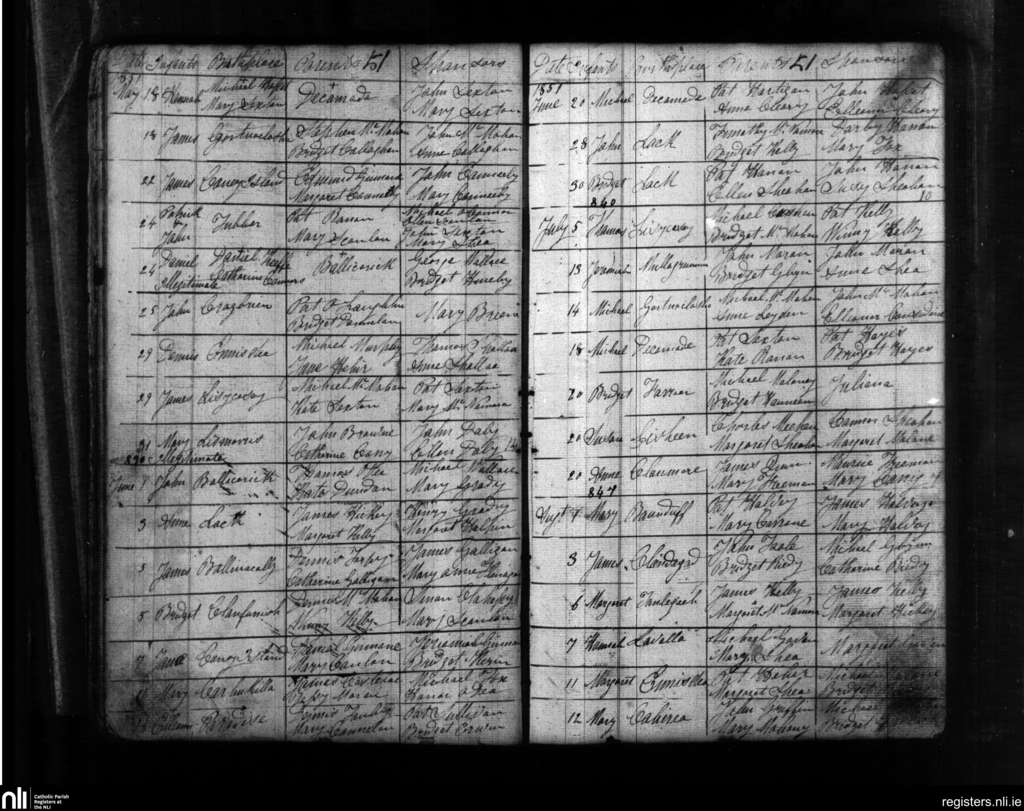 Kilchrist; County of Clare; Diocese of Killaloe. Baptisms, May 1851 to Aug. 1851