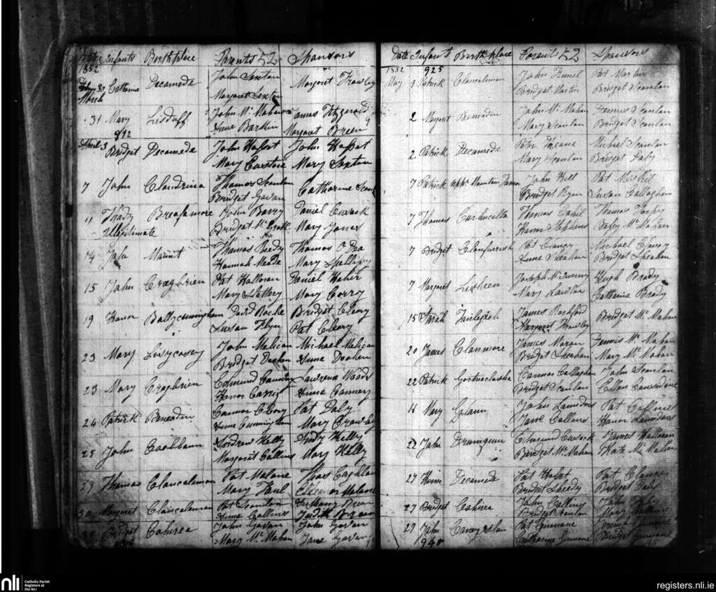 Kilchrist; County of Clare; Diocese of Killaloe. Baptisms, Mar. 1852 to May 1852