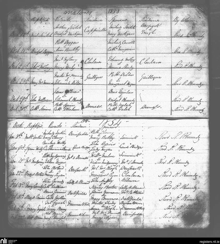 Doonass and Truagh; County of Clare; Diocese of Killaloe. Baptisms, Dec. 1853 to Feb. 1854