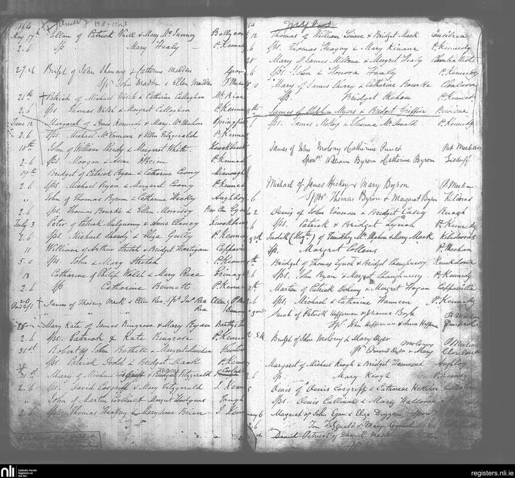 Doonass and Truagh; County of Clare; Diocese of Killaloe. Baptisms, May 1864 to Jan. 1865