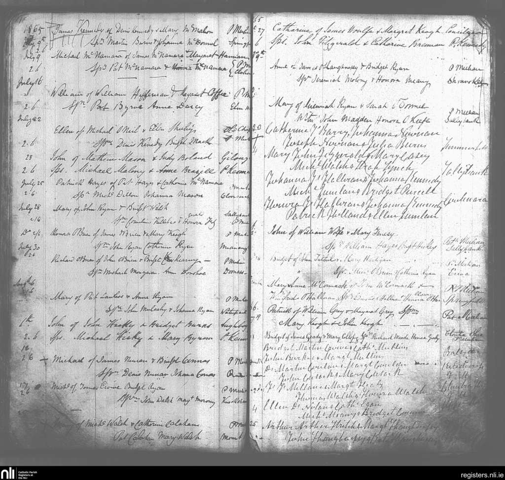 Doonass and Truagh; County of Clare; Diocese of Killaloe. Baptisms, July 1865 to Jan. 1866