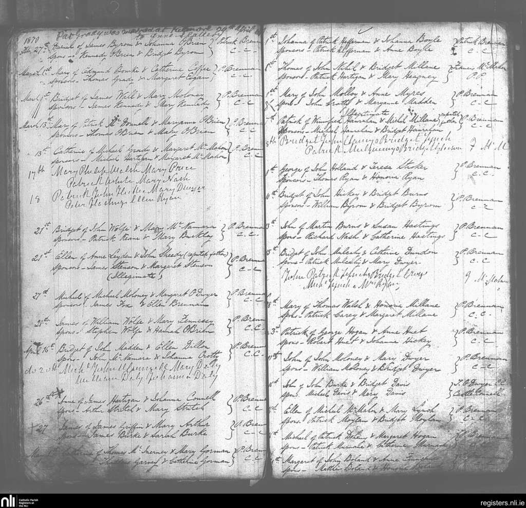 Doonass and Truagh; County of Clare; Diocese of Killaloe. Baptisms, Marriages, Feb. 1870 to May 1870