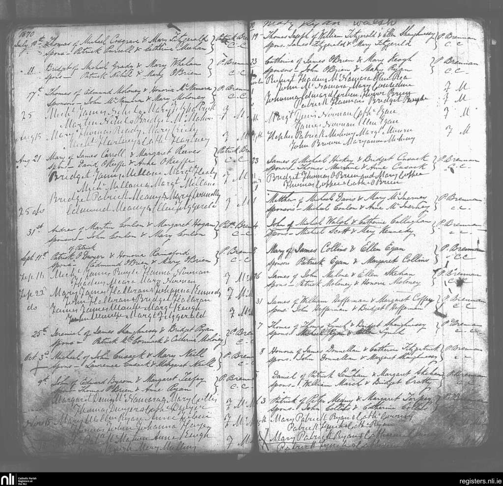 Doonass and Truagh; County of Clare; Diocese of Killaloe. Baptisms, July 1870 to Feb. 1871