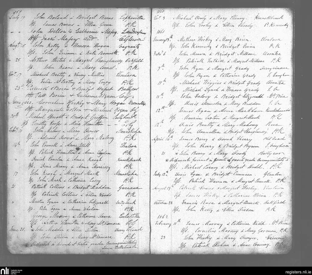 Doonass and Truagh; County of Clare; Diocese of Killaloe. Marriages, July 1859 to Feb. 1862