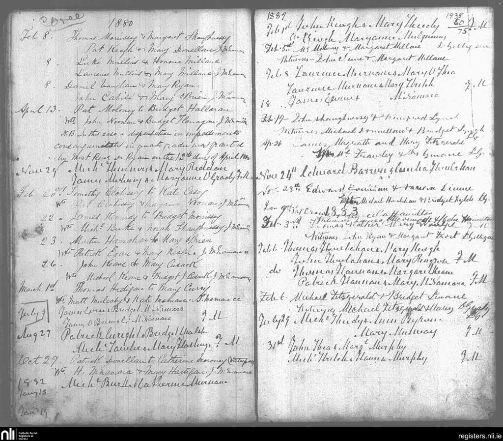 Doonass and Truagh; County of Clare; Diocese of Killaloe. Marriages, Feb. 1880 to July 1883