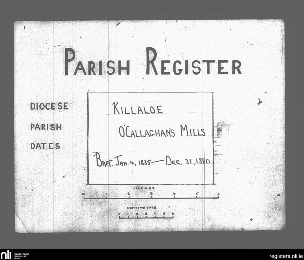 O'Callaghan's Mills; County of Clare; Diocese of Killaloe. Baptisms