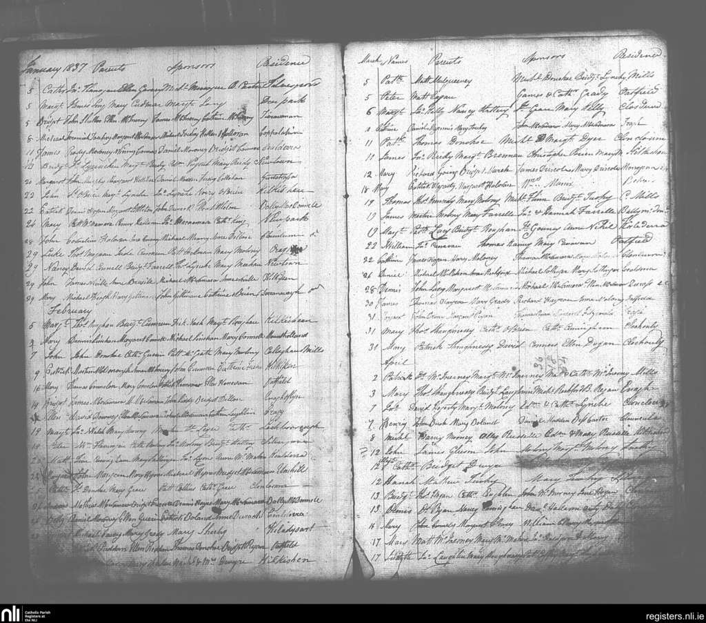 O'Callaghan's Mills; County of Clare; Diocese of Killaloe. Baptisms, Jan. 1837 to Apr. 1837