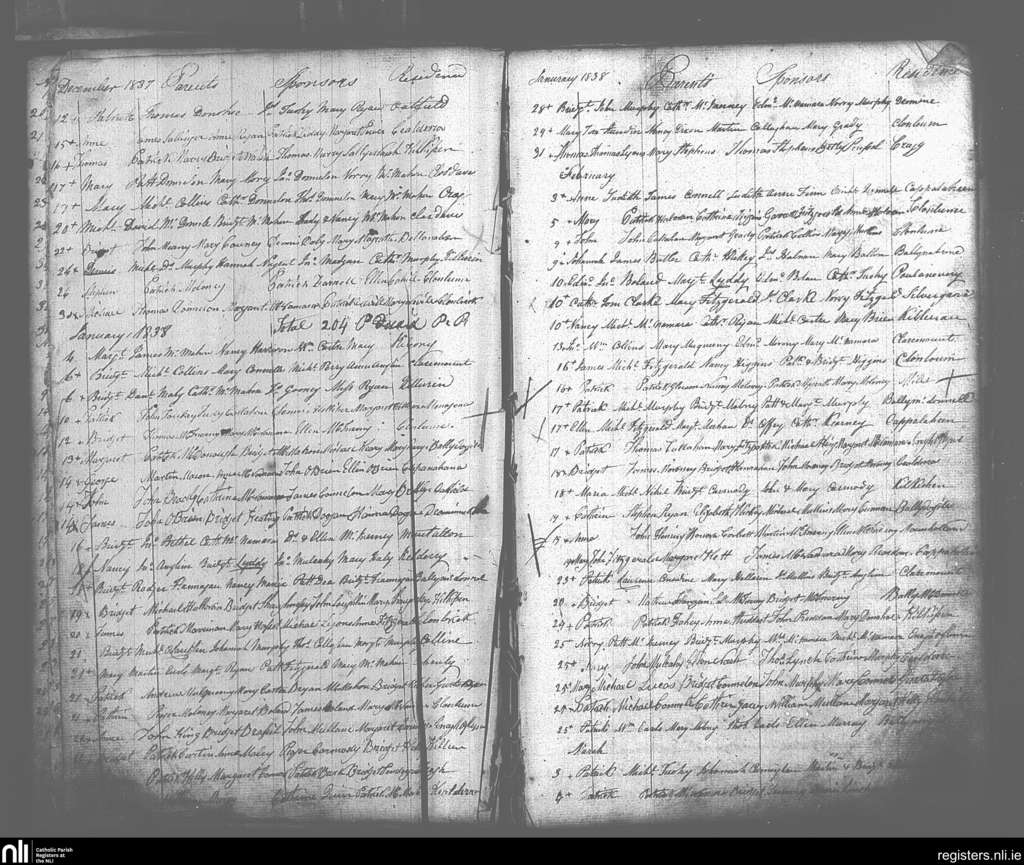 O'Callaghan's Mills; County of Clare; Diocese of Killaloe. Baptisms, Dec. 1837 to Mar. 1838