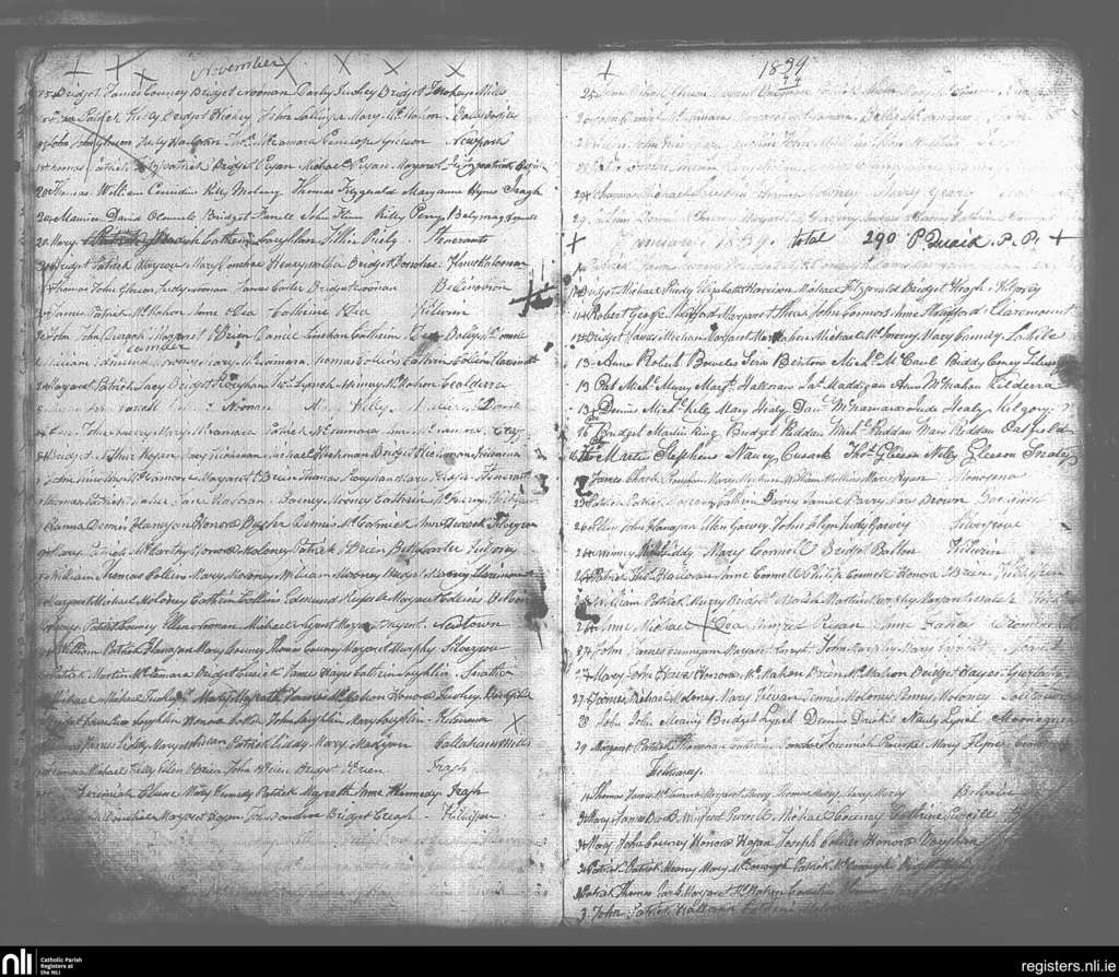 O'Callaghan's Mills; County of Clare; Diocese of Killaloe. Baptisms, Nov. 1838 to Feb. 1839