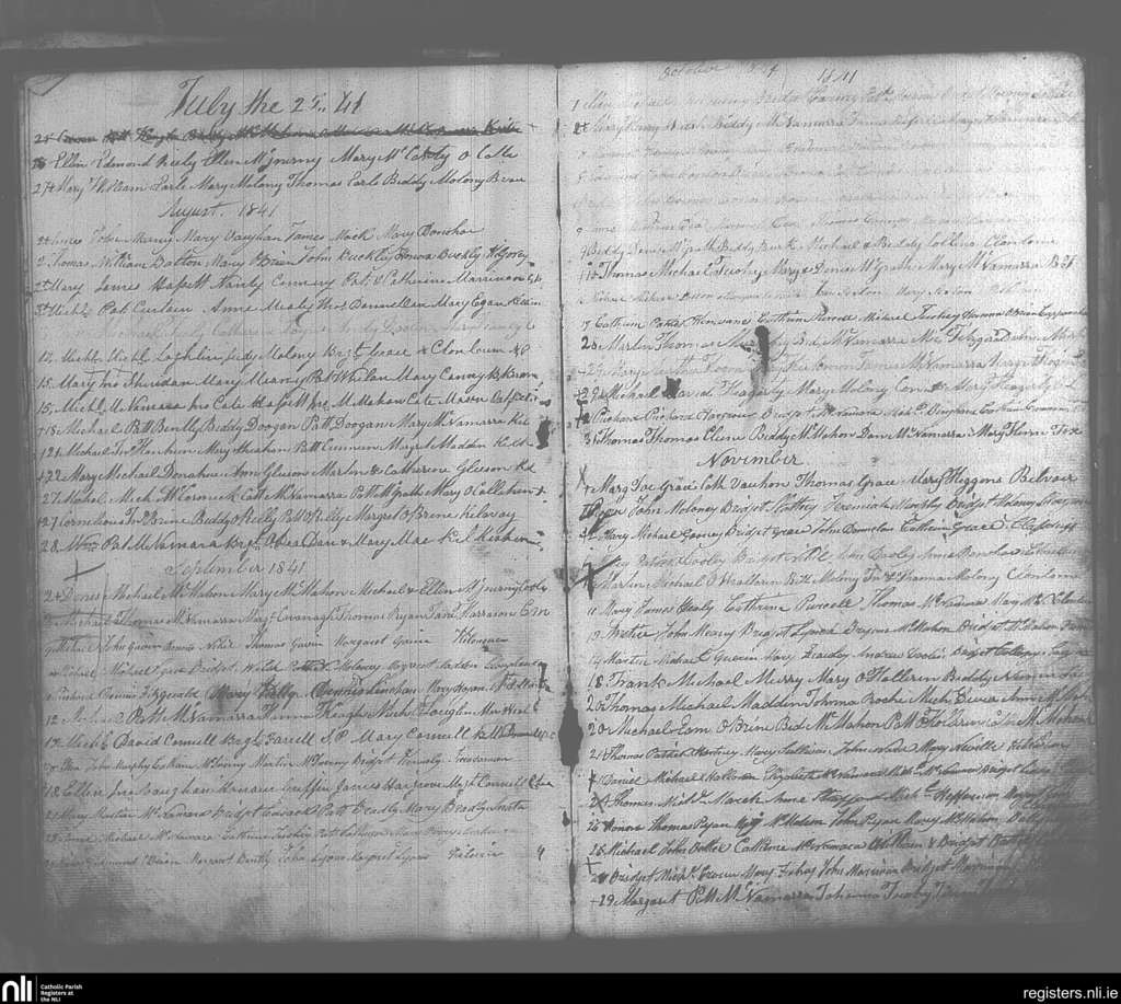 O'Callaghan's Mills; County of Clare; Diocese of Killaloe. Baptisms, July 1841 to Nov. 1841