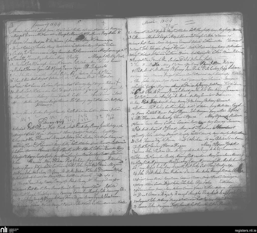 O'Callaghan's Mills; County of Clare; Diocese of Killaloe. Baptisms, Jan. 1844 to Mar. 1844