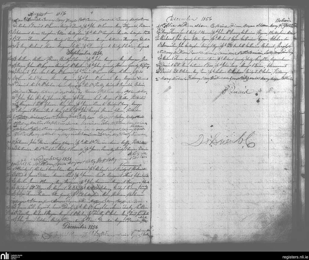 O'Callaghan's Mills; County of Clare; Diocese of Killaloe. Baptisms, Aug. 1856 to Dec. 1856