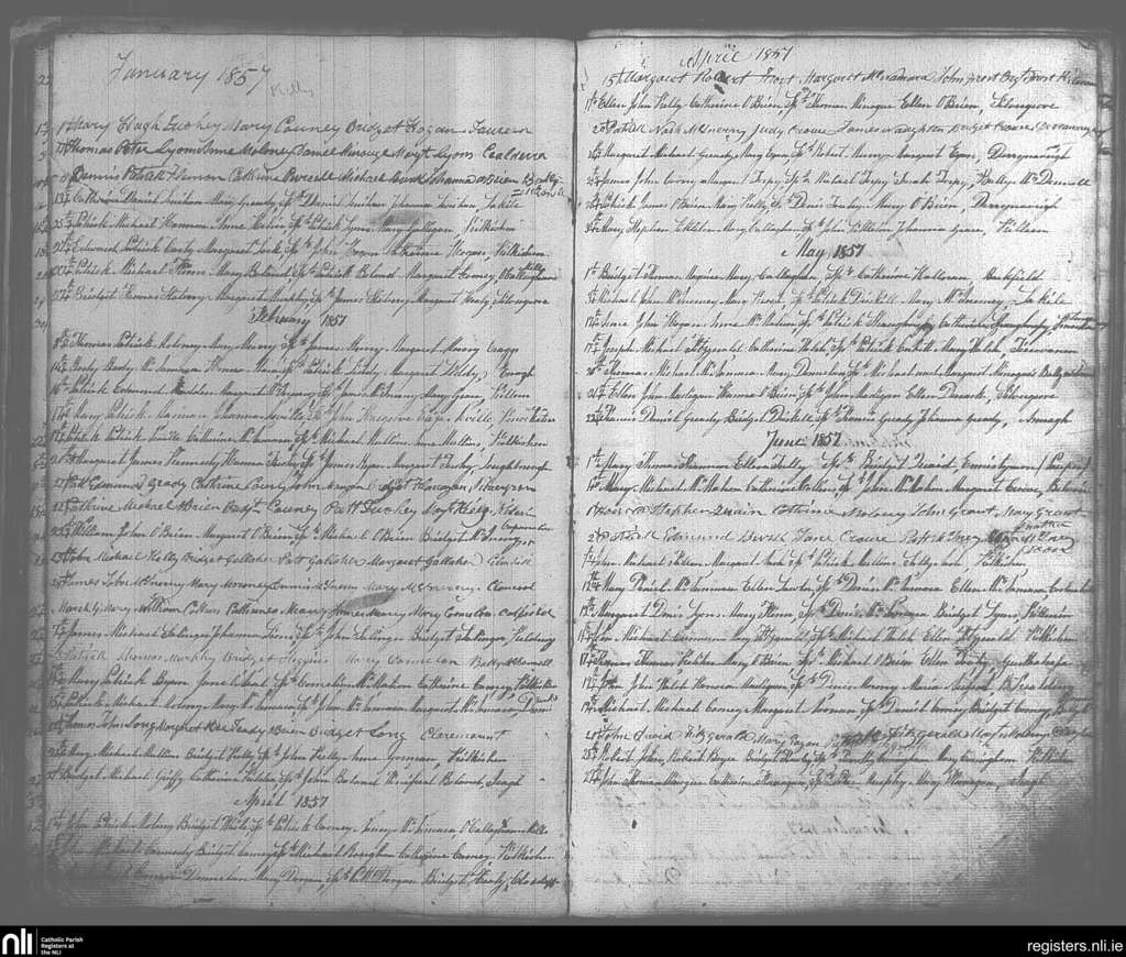 O'Callaghan's Mills; County of Clare; Diocese of Killaloe. Baptisms, Jan. 1857 to June 1857