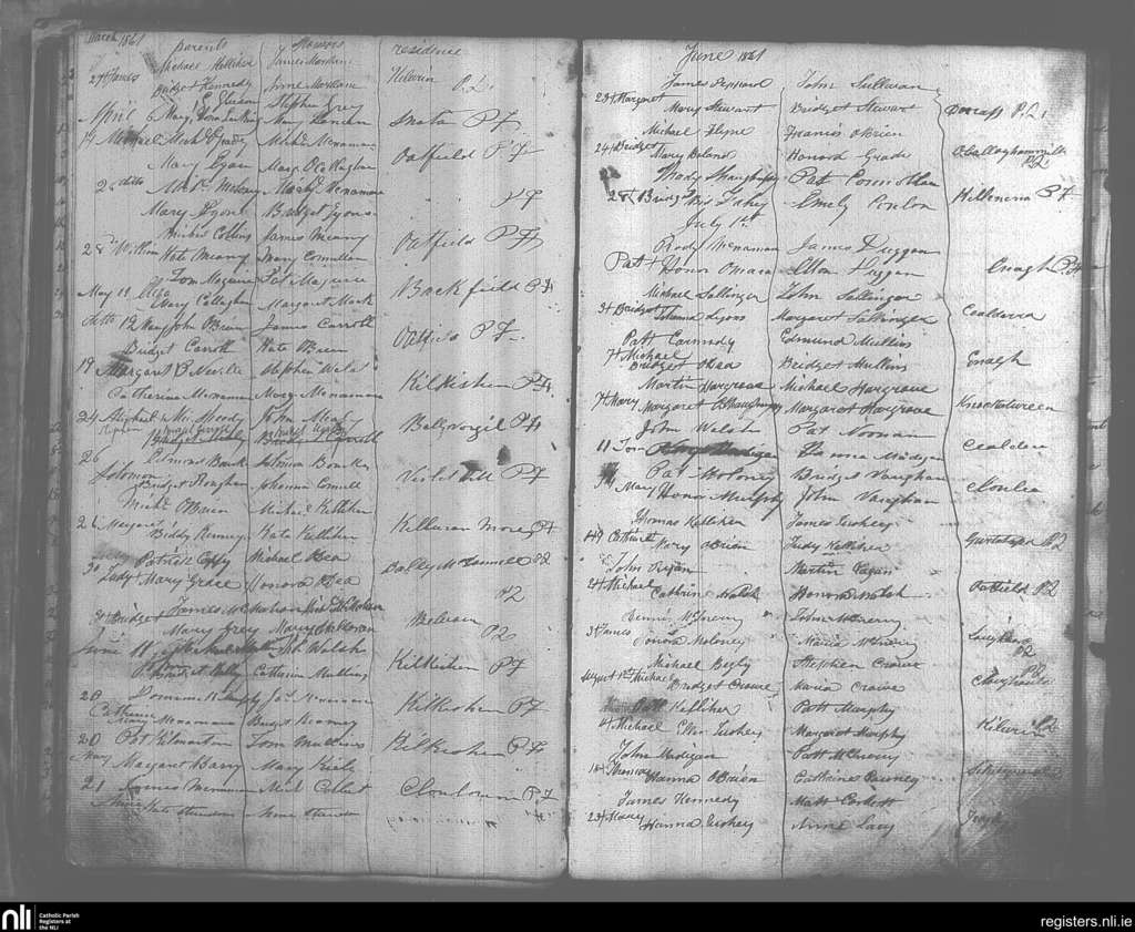 O'Callaghan's Mills; County of Clare; Diocese of Killaloe. Baptisms, Mar. 1861 to Aug. 1861