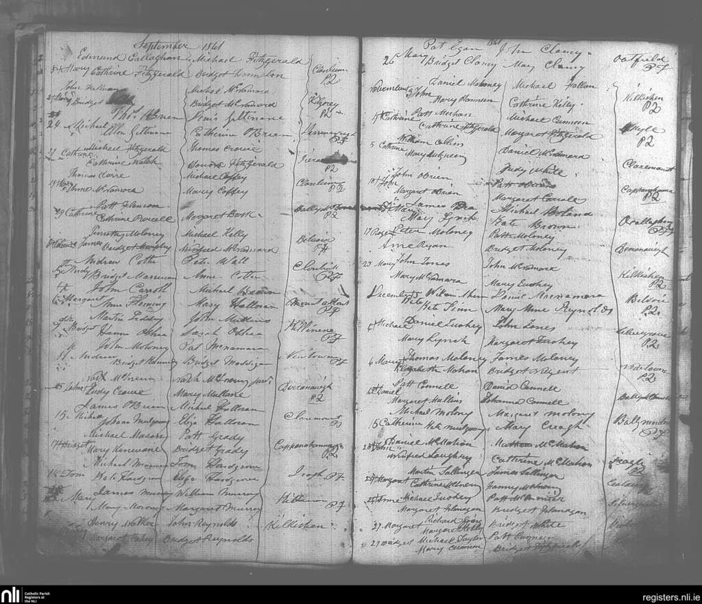 O'Callaghan's Mills; County of Clare; Diocese of Killaloe. Baptisms, Sep. 1861 to Dec. 1861