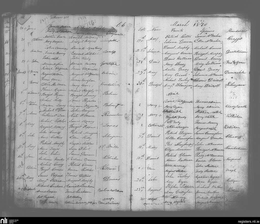 O'Callaghan's Mills; County of Clare; Diocese of Killaloe. Baptisms, Feb. 1870 to Apr. 1870