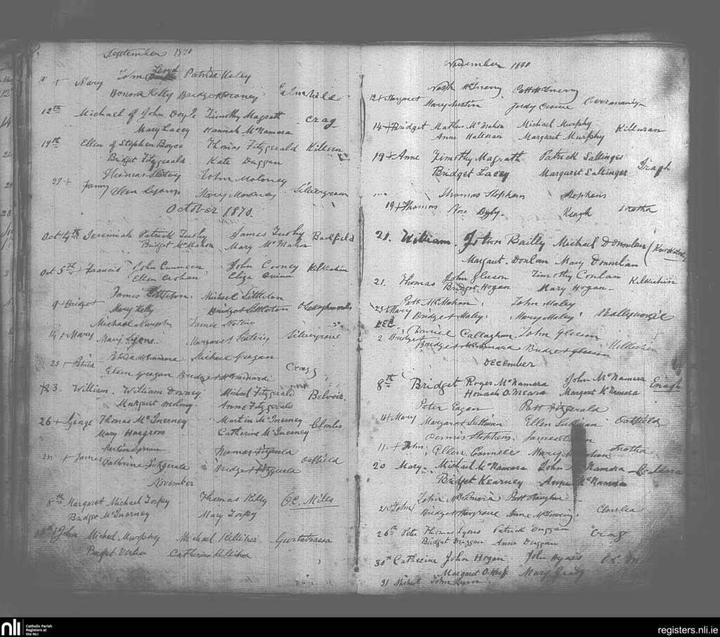 O'Callaghan's Mills; County of Clare; Diocese of Killaloe. Baptisms, Sep. 1870 to Dec. 1870
