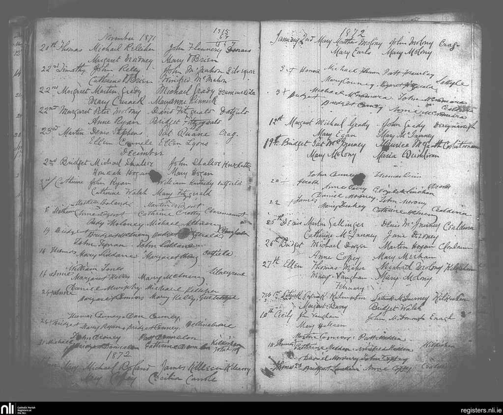 O'Callaghan's Mills; County of Clare; Diocese of Killaloe. Baptisms, Nov. 1871 to Feb. 1872